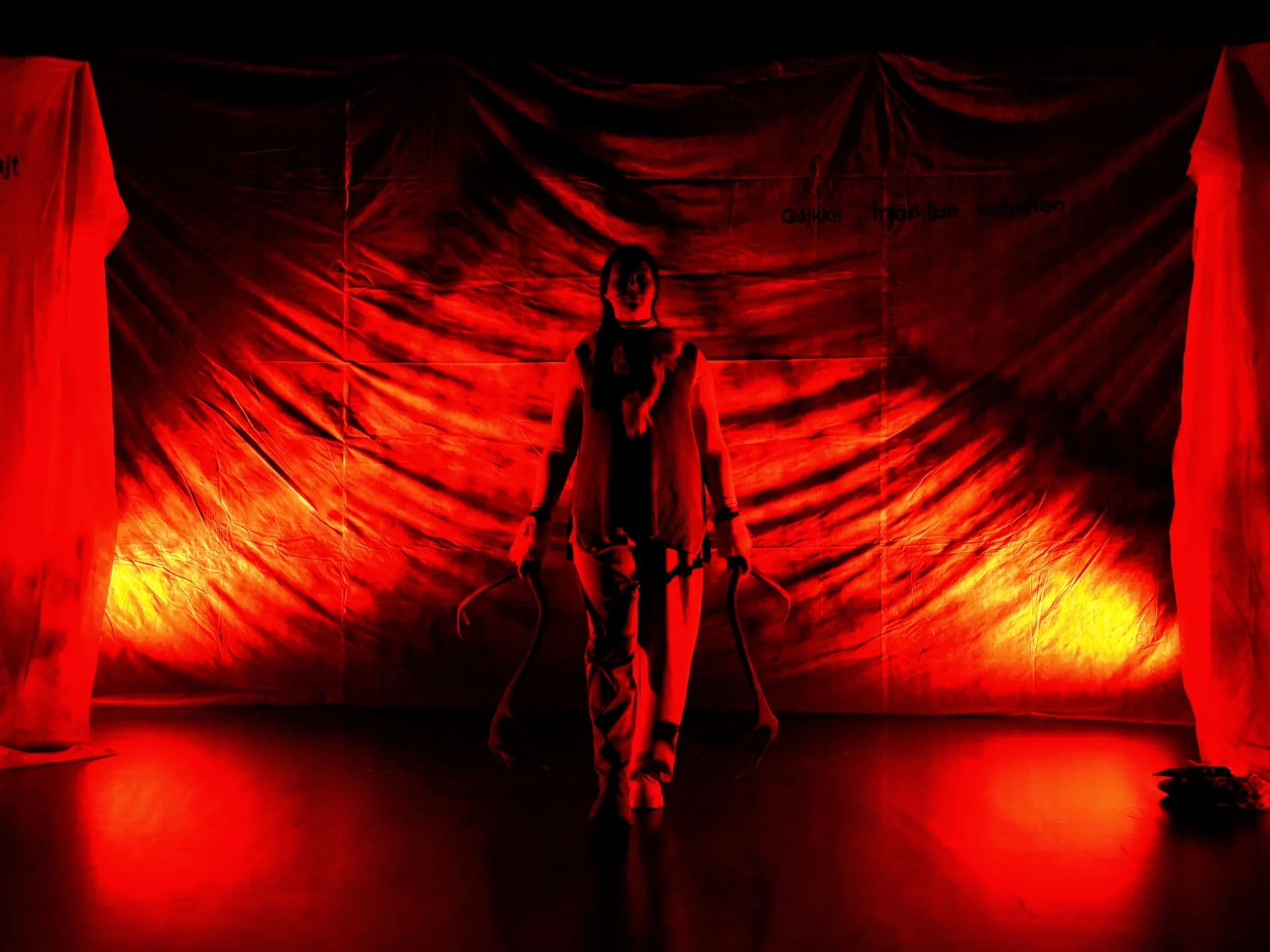 StaajneActress, yoiker and composer in the performance by Emma Sofie Rustad Jåma, Ole Henrik Lifjell for DKS Nordland.